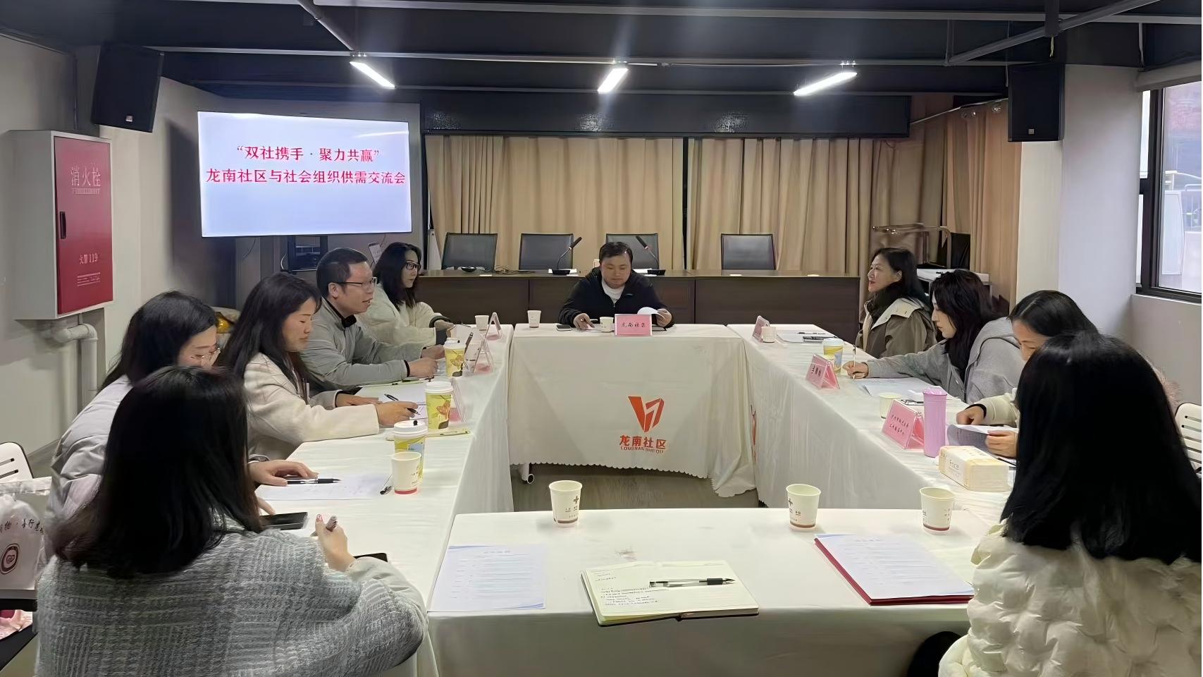 为进一步搭建社区与社会组织的供需对接平台,精准匹配基层服务需求与社会组织专业资源,推动“双社”(社区与社会组织)协同联动、资源整合,提升社区治理与服务效能,实现合作共赢,2025年11月12日,在泸州市民政局指导下,泸州市社会组织孵化基地携手泸州市龙马潭区红星街道龙南社区、泸州市龙马潭区泾华社会工作服务中心、泸州市江阳区家庭教育协会及泸州市阳光社会工作服务中心开展了“双社携手·聚力共赢”——龙南社区和社会组织供需交流会。